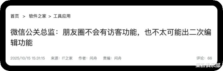 除了账号管理政策的变化,微信近期还就用户长期关注的朋友圈功能给出了明确回应。